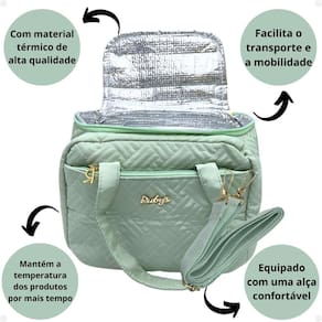 A Necessaire Térmica Rubys com a elegante cor Verde Claro é a escolha perfeita para quem valoriza praticidade e estilo. Ideal para manter seus itens essenciais organizados e protegidos, esta necessaire é perfeita para viagens, trabalho ou uso diário. Confeccionada com material térmico de alta qualidade, a necessaire mantém a temperatura dos seus produtos por mais tempo, garantindo que itens como cosméticos e medicamentos estejam sempre na temperatura ideal. Facilita o transporte e a mobilidade de seus produtos que devem ser transportados com a temperatura ideal, permitindo que você leve sua necessaire com facilidade aonde for.