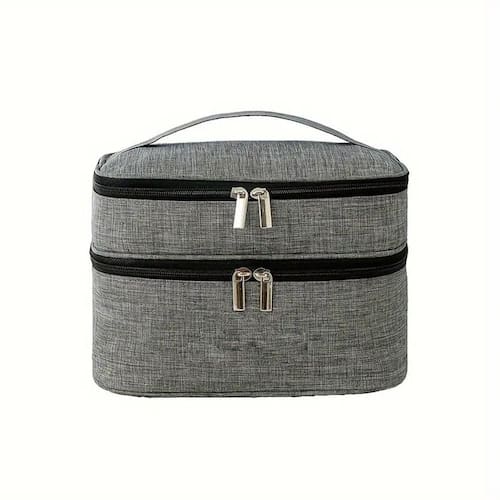 Com a Necessaire de Dois Andares, você organiza seus produtos de beleza com praticidade e elegância, seja para uma viagem rápida ou uma aventura inesquecível. Sua Maquiagem Viaja em Grande Estilo com a Necessaire de Dois Andares!