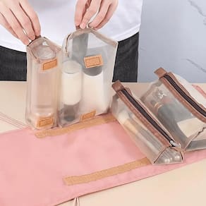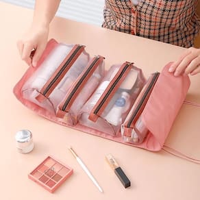 Material principal: Náilon Dimensões: Compacto o suficiente para caber em qualquer mala ou bolsa de mão Ideal para: Viagens de negócios, férias ou uso diário Não deixe que a bagunça atrapalhe sua viagem. Adquira nossa Necessaire de Viagem e mantenha suas maquiagens e acessórios organizados com praticidade e estilo onde quer que vá.