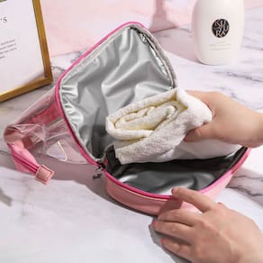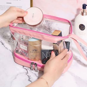 Com 2 bolsos com zíper, você terá espaço de sobra para guardar seus itens de higiene e maquiagem com total segurança. A transparência do material permite que você localize rapidamente o que precisa, evitando o incômodo de ficar procurando em meio a bagunça.