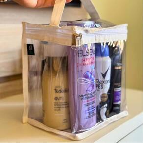 Feito de PVC cristal transparente, este necessaire é resistente e durável, perfeito para uso diário ou para viagens. Seu fechamento é feito por zíper, garantindo a segurança de seus itens. Com dimensões de 20 cm de comprimento, 15 cm de largura e 20 cm de altura, oferece espaço suficiente para acomodar todos os seus produtos essenciais.