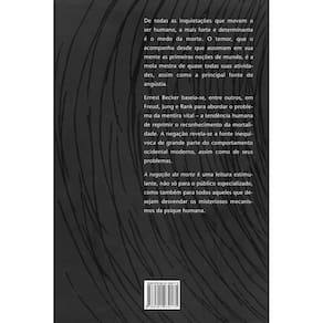 Título Do Livro: A negação da morte Autor: Becker, Ernest Idioma: Português Editora Do Livro: Editora Record Ltda. Capa Do Livro: Mole Ano De Publicação: 1991 Quantidade De Páginas: 364 Altura: 230 mm Largura: 155 mm Peso: 534 g Com Páginas Para Colorir: Não Com Realidade Aumentada: Não Tradutores: Silva Luiz Carlos do Nascimento Gênero Do Livro: Filosofia e psicologia Subgêneros Do Livro: Medo, Inquietação, mentira vital, mortalidade Tipo De Narração: Conto Idade Mínima Recomendada: 18 anos Data De Publicação: 01-12-2019