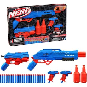 Os lançadores Alpha Strike podem ser uma excelente introdução à potência, à performance e à diversão de Nerf, a marca número um de lançadores. Perfeito para dar de presente, festas, ou se divertir com jogos Nerf! Inclui 4 lançadores Nerf Alpha Strike, 2 semi-alvos e 25 dardos oficiais Nerf Elite!