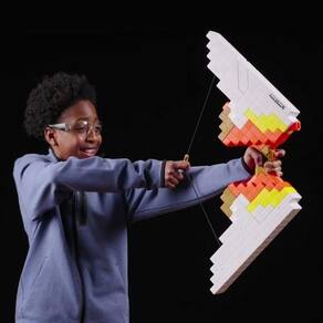 Nerf e Minecraft se unem para trazer a você o arco Sabrewing que se inspira no popular jogo Minecraft Dungeons! Experimente a ação real do arco e o lançamento de dardos motorizados com o arco Nerf Minecraft Sabrewing inspirado no arco do Minecraft. Puxe a corda para trás com a alça de escorva para ligar o motor e pressione o botão de explosão para disparar 1 dardo.O arco inclui um clipe de 8 dardos, então solte 8 dardos seguidos antes da hora de recarregar.Requer 4 pilhas alcalinas AA de 1,5 V ( NÃO INCLUSA )Marca: HasbroModelo: F4734Idade: +8 anosConteúdo: 1 Lançador Nerf Minecraft Sabrewing - Hasbro F4734