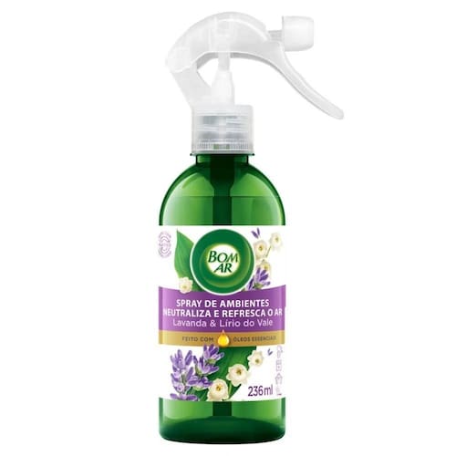 Neutralizador de odores spray lavanda & lírio do vale bom ar frasco 236ml Novo spray de ambientes bom ar. Nada além do que você precisa para neutralizar os maus odores e refrescar sua casa feito com poderosas moléculas capazes de neutralizar maus odores e perfumar o ambiente. Fragrância com óleos essenciais naturais. Neutraliza maus odores de banheiro, cozinha, animais domésticos, e frituras. Marca: Não Informado Ean: 7891035002496