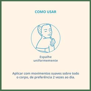 Aplique o hidratante por todo o corpo, principalmente nas áreas mais ressecada como pés, pernas e cotovelos, até completa absorção pela pele.