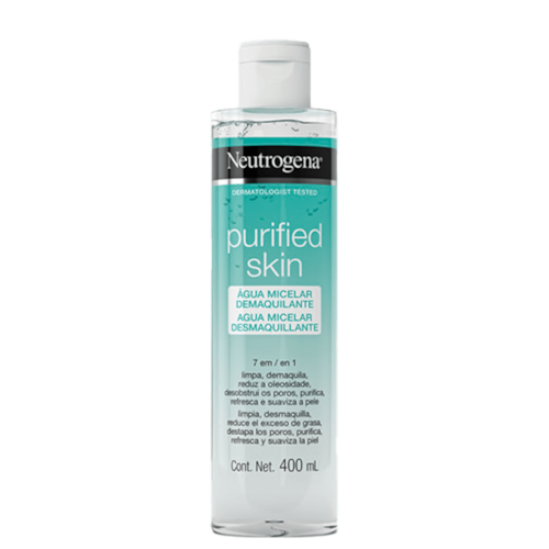 Água micelar para todos os tipos de pele. Neutrogena Purified Skin 7 Em 1 possui fórmula com 7 benefícios para o cuidado diário: limpa, purifica, demaquila, controla a oleosidade, desobstrui os poros, refresca e suaviza a pele.