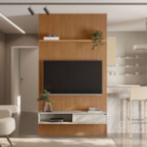 Complemente seu Painel Modular Emily com o Nicho Suspenso 1.4, uma peça funcional e elegante para organizar e exibir seus itens com estilo. Com porta basculante e pistão a gás e passagem para fios, ele é ideal para acomodar eletrônicos e manter tudo organizado.
