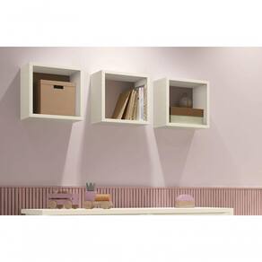 Nicho Aéreo Para Quarto Infantil Juju Areia Fosco - Moveisaqui Funcionalidade define o Kit de Nichos Juju - MóveisAqui perfeitos para organizar as decorações do quartinhos das crianças. Dimensões do Produto Montado:Altura: 30 cmLargura: 30 cmProfundidade: 20 cmObservações:- Produzido em MDF;- Incluso os 3 nichos;- Pintura ultravioleta com acabamento fosco.