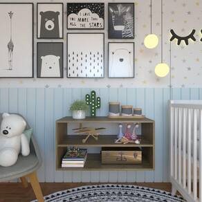 Nicho com Prateleira Quarto Infantil Bramov Móveis Carvalho. Os Móveis devem ser escolhidos com muito carinho, independente de qual for o ambiente, pois eles fazem parte da rotina do dia a dia do nosso lar ou trabalho. Portanto, na hora de decidir qual modelo, lembre-se: além de ter a ergonomia necessária, a medida ideal, um design incrível, eles também devem cumprir suas funções com desempenho total, e na hora da escolha das cores, elas devem combinar com seu estilo e personalidade. Os Móveis para Ambiente Infantil da Bramov Brasil possuem um design encantador, que permite trazer outros elementos decorativos para compor o ambiente.
