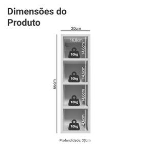Cor: Branco | Garantia: 12 meses | Dimensões - Altura: 66 cm | Dimensões - Largura: 20 cm | Dimensões - Profundidade: 30 cm | Produto: Cozinha | Marca: Madesa | Peso aproximado: 7kg | Material: MDP | Estado de Origem: RS | Conteúdo da embalagem: 1 Armário Aéreo | Material para Filtro: MDP | Instruções/Cuidados: Utilize um pano limpo, levemente umedecido e seque em seguida a superfície. Não usar produtos químicos ou abrasivos para a limpeza. Recomendamos polir seu móvel com lustra-móveis duas a três vezes por ano. | Produto precisa de Montagem?: Sim | Peso Produto Com Embalagem (Kg): 7,4 | Altura do Produto com Embalagem (cm): 7,5 | Largura Produto Com Embalagem (cm): 30,3 | Comprimento Produto Com Embalagem (cm): 66,7 | Descrição do Tamanho: 66 cm x 20 cm x 30 cm | Nome do Simples no Fornecedor: Nicho de Parede 20 cm 4 Prateleiras Branco Neo Madesa | Fabricante: Madesa | RBN: Casa/Móveis/Móveis de Quarto | Materiais do corpo: MDP | Quantidade de caixas de embalagem: 1 | Bullet Point 1: Dimensões: 66 cm altura x 20 cm largura x 30 cm profundidade | Bullet Point 2: O puxador slim em alumínio adiciona um toque moderno ao design. | Bullet Point 3: Possui acabamento de alta resistência, conservando a beleza do móvel por muito mais tempo. | Bullet Point 4: A Linha Neo da Madesa foi desenvolvida para oferecer soluções planejadas e inteligentes | É Frágil: Não | Quantidade de Itens: 1 | Certificação de teste externa: Sim | Precisa de baterias ou pilhas: Não | Número da peça (part_number): MDDR01003109 | Peso do item (item_weight): value=7.0;unit=kilograms | Dimensões do item P x L x A (item_depth_width_height): depth#value=30;depth#unit=centimeters;height#value=66;height#unit=centimeters;width#value=20;width#unit=centimeters | Exige montagem (is_assembly_required): Sim | Requer montagem (REQUIRES_ASSEMBLY): Sim | Inclui manual de montagem (INCLUDES_ASSEMBLY_MANUAL): Sim | Número do modelo (model_number): MDDR01003109 | is_assembly_required: Sim | Componetes Incluidos: Portas | Cor: Branco