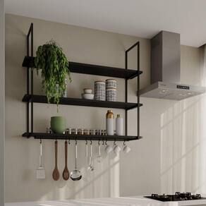AS IMAGENS SÃO MERAMENTE ILUSTRATIVAS E PODEM SOFRER VARIAÇÕES DE COR E PEQUENOS DETALHES DE ACORDO COM O SEU MONITOR, ILUMINAÇÃO DO AMBIENTE E ATÉ MESMO A SUA PERCEPÇÃO VISUAL.Nicho De Parede Londres 120 Cm Preto