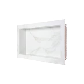 NICHO TODO EM PORCELANATO POLIDO PARA BANHEIROBORDA EMBUTIDA/BORDA SIMPLES* Fabricado todo em porcelanato, inclusive as bordas! COR: Branco / Bege / Carrara / Calacatta MEDIDAS EXATAS INTERNAS: 58 cm Comprimento x 27 cm Altura x 9 cm ProfundidadeBORDA: 4 cmMEDIDAS EXATAS EXTERNAS: 67 cm Comprimento x 37 cm Altura x 9,5 cm ProfundidadeMATERIAL: Porcelanato, bordas também em porcelanato