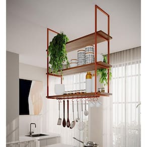 AS IMAGENS SÃO MERAMENTE ILUSTRATIVAS E PODEM SOFRER VARIAÇÕES DE COR E PEQUENOS DETALHES DE ACORDO COM O SEU MONITOR, ILUMINAÇÃO DO AMBIENTE E ATÉ MESMO A SUA PERCEPÇÃO VISUAL.Nicho De Teto IndÃstrial Denver 95cm Cobre