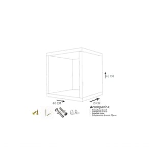 Material: confeccionado 100% em MDF de reflorestamento, com espessura de 15mm, e nas bordas frontais, são colocadas fitas de PVC que embelezam e aumentam a durabilidade, na linha de produtos naturais, aqueles que são vendidos para personalização ou utilização natural não acompanha tapa furos ou acabamento com PVC. Ainda conta com o acabamento feito à mão, para garantir a total qualidade do produto. Informações sobre as imagens do produto: - fazemos de tudo para apresentar imagens muito fiéis ao produto real. Porém, as cores do produto podem variar de acordo com o seu monitor, a iluminação do ambiente em que você está e até mesmo a sua percepção visual. - Além da cor pequenos detalhes e acabamentos podem não ficar evidentes na foto, por isso as imagens são meramente ilustrativas. - Os objetos decorativos que aparecem na foto não acompanham o produto. As medidas dos produtos estão nas fotos publicadas Os produtos que precisam de kit para instalação, ao exemplo de prateleiras, painéis, nichos e suportes acompanham o kit de instalação. Produtos enviados montados apenas requer instalação no local.