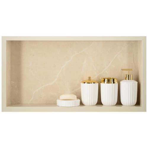 Nicho para banheiroCom o nicho você organiza seus produtos de higiene e banho aproveitamento melhor seu espaço, deixando seu banheiro mais elegante.Especificações técnicas:Material:- fundo e laterais: porcelanato polido- bordas: alumínio cor bege idêntica a cor do porcelanato- borda: alumínio com pintura eletrostática não enferruja Tamanho:- medidas externas: 61,8 cm comprimento x 31 cm altura x 11 cm profundidade- medidas internas: 60 cm comprimento x 30 cm altura x 10 cm profundidade- medidas da borda: 2,5 cmEnviamos até 2 peças por pedidoObservação: esse modelo de nicho é próprio para embutir na parede. Marca: Incompany Home