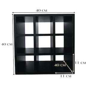 Nicho Organizador Multiuso com 9 Compartimentos: Ideal para uso em Assistência Técnica para organizar Celulares e Eletrônicos; Porta Toalhas e Salões e Barbearias; Porta Velas; Pequenas Decorações; Material: MDF 15mm - com revestimento Melamínico Cor: PRETO MEDIDAS Compartimentos: 11 Largura x 11 Altura x 20cm Profundidade MEDIDAS EXTERNAS: 40 Largura x 40 Altura x 20cm Profundidade O produto segue desmontado; Fácil Montagem (Acompanha Manual e Kit Montagem). Acompanha parafusos, buchas e suporte para fixação; Acabamento de Alta qualidade! Resistente a riscos; prático, com alto brilho, de fácil limpeza, e de simples instalação.