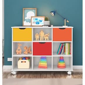 Seus diferenciais são: Confeccionado em MDP e MDF de 15mm; Acabamento em pintura UV; 9 nichos internos com amplo espaço; Comporta vários objetos; 4 rodízios