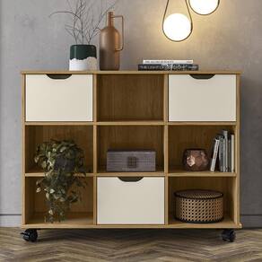 Nicho Organizador 1478 com 3 Gavetas - Qmovi O Nicho Organizador foi pensado para facilitar o processo de organização. É um produto muito prático que pode ser utilizado em diversos ambientes como quarto infantil, sala de estar e escritório. Ele possui 9 compartimentos internos que contribuem para organização do local e rodízios que facilitam a locomoção. Acompanha Kit com 3 Gavetas, um módulo opcional que foi feito para incrementar o Nicho Organizador, melhorando sua divisão interna e dando mais beleza e praticidade ao seu ambiente. As gavetas contam com fitas de feltro na parte inferior para não danificar o móvel.