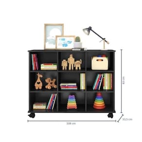 Pode ser utilizado em diversos ambientes como quarto infantil e escritório, contribuindo para a organização do local e levando funcionalidade e praticidade ao seu espaço. Com nove gavetas coloridas com fitas de feltro para não riscar o produto. Altura do Conjunto: 83 cm Ambiente: null Ambiente Principal: Quarto Infantil Cor: Preto Informação Complementar: 1x Nicho Organizador 3x3 Infantil PretoLargura: 108,0 cmAltura: 83,0 cmPeso: 24 kgProfundidade: 33,5 cmNecessita Montagem: Sim1x Kit 3 Gavetas Organizadoras PretoLargura: 32,8 cmAltura: 23,2 cmPeso: 7,6 kgProfundidade: 30,8 cmNecessita Montagem: Sim Possui Portas: Não Tamanho: