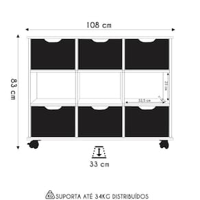 O Nicho Organizador 6 Gavetas com Rodízios Freijó/Preto da Qmovi representa uma solução inteligente e sofisticada para manter a ordem no Quarto Infantil.