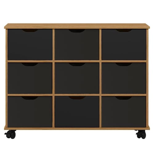 Conheça o Nicho Organizador 9 Gavetas com Rodízios Freijó/Preto da Qmovi destaca-se por sua versatilidade e design inteligente, sendo uma excelente escolha para quem busca otimizar o espaço. A combinação de Nicho Aberto e gavetas fechadas oferece uma ampla solução de armazenamento, permitindo que organizem desde brinquedos até materiais escolares com facilidade. Os rodízios reforçam a funcionalidade do móvel, facilitando a reorganização do ambiente conforme necessário. Além disso, o Nicho Multiuso conta com ótima durabilidade pelo uso de MDP/MDF e o acabamento em pintura UV, que protege o móvel contra desgastes do dia a dia e confere um visual moderno e elegante. O Quarto Infantil ganha não apenas em organização, mas também em estilo, proporcionando um espaço acolhedor e encantador para as crianças. Adicione ao carrinho e transforme seu espaço com este Nicho Organizador!