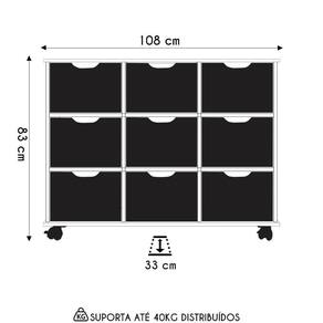 Model: Qmovi | Largura: 108 cm | Gênero: Unisex | ProductWeight: 49 | Origem: | Cor: FreijóPreto | ProductWidth: 108 | ProductWarranty: 90 dias após o do produto | ProductLength: 33 | Requere montagem: Sim | Profundidade: 33 cm | ProductHeight: 83 | ProductInstructions: Produto para uso em ambiente interno, nao devendo ficar exposto ao sol, calor e umidade excessivos. | ProductContents: 1 Nicho e 9 Gavetas | SizeDescription: 83 x 108 x 33 cm | MaterialFamily: MDF | OriginState: PR | Altura: 83 cm | AssemblyRequired: Sim, sugerimos a contratação do nosso de montagem (para os CEPs em que o está dispon | ColorSupplier: Freijó | Peso: 49 kg | SupplierSimpleName: Nicho Organizador 9 Gavetas com Rodízios FreijóPreto - Qmovi | Material: MDF | Color: Freijó | Manual: Sim | ColorFamily: Freijó | ColorSimple: Freijó | OriginCountry: