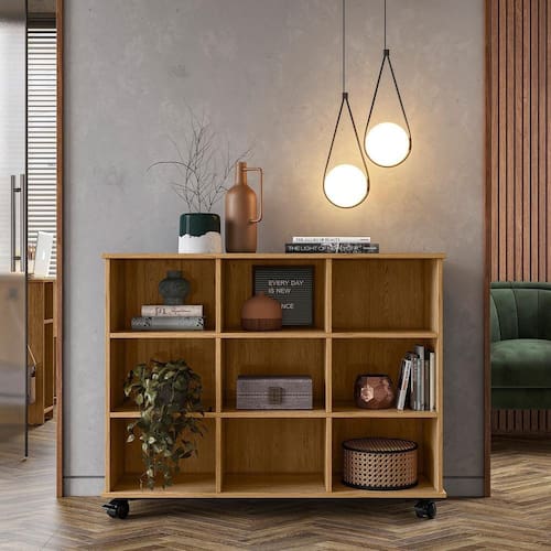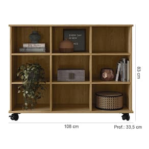 Características: Estrutura em MDP Acabamento em Pintura UV Atóxica 09 Nichos internos com amplo espaço para boa organização Móvel multifuncional, podendo ser utilizado em diversos ambientes Acompanha kit de rodízios