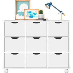 Nicho Organizador Com 9 Gavetas Branco Qmovi Nicho Organizador 9 Gavetas com Rodízios Nicho Organizador 9 Gavetas com Rodízios produto multifuncional que pode ser utilizado para ambiente de quarto infantil e escritório, contribuindo para a organização do local. Possui 4 rodízios e amplo espaço. Estrutura em MDP e MDF para mais durabilidade e resistência. Confira e leve o seu! ESPECIFICAÇÕES Dimensão: Dimensões do Produto: (Largura x Altura x Profundidade) 108 x 83 x 33,5 cm. Estrutura: MDP/MDF 12 e 15 mm; Frente da gaveta em MDF 15 mm. Acabamento: Pintura com acabamento de impressão UV alto brilho; Frentes de Gavetas com acabamento de bordas em Pintura PU. Diferenciais: Rodízios incls; Gavetas com fitas de feltro para não riscar o produto; Produto multifuncional com amplo espaço. Peso: Peso do Produto: 44,10 kg; Peso suportado: 15 Kg distribuídos. As imagens e o ambiente são meramente ilustrativas. Não acompanha acessórios, eletrônicos ou demais móveis ambientados. Observações Importantes: A Combo Stock não se responsabiliza pela ou des dos Produtos que deverão ser feitas por um profissional. Estes serviços não estão incls nos valores dos mesmos. Pode haver alguma diferença de tonalidade entre a imagem e o produto real, por conta do tratamento de imagens e a calibração de cores do seu monitor. Ao receber a mercadoria, o cliente deve verificar as dimensões e condições da embalagem, caso haja alguma não assine o comprovante de recebimento. Certifique-se de que estão adequados aos elevadores, portas e corredores do local da , visto que NÃO fazemos a , des do produto e/ou portas e janelas, transporte pela escada ou içamentos pelo lado de fora do prédio. Em casos de Edifícios ou condomínios, o . . As imagens e o ambiente são meramente ilustrativas. Não acompanha acessórios, eletrônicos ou demais móveis ambientados. undefined