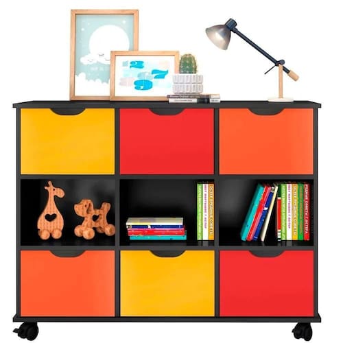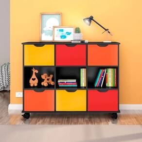Um móvel versátil e funcional que pode ser em diversos ambientes da casa. Ele possui 3 Nichos Abertos para livros, objetos decorativos, brinquedos ou o que mais você quiser. Além disso o Nicho Organizador, ele conta com 6 gavetas com detalhe curvado que dispensa puxadores e dá um design minimalista ao móvel. O Nicho com Gavetas é feito de MDP de alta qualidade e tem acabamento em pintura UV que garante maior durabilidade e resistência. Ah e ele ainda possui rodízios que facilitam a movimentação e a limpeza do espaço.