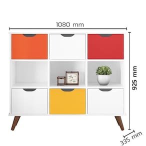 Esse armário organizador composto por 3 nichos e 6 gavetas é o móvel ideal para deixar tudo no lugar, pois além de funcional, ainda dá um toque de charme na decoração do seu ambiente graças aos pés retrô e os puxadores modelo cava. Somado a esses adjetivos, esse nicho também tem uma qualidade inquestionável e com o melhor custo-benefício, uma vez que é fabricado em MDP 15mm, ou seja, madeira proveniente de reflorestamento, com acabamento em pintura UV, o que garante maior resistência e durabilidade. Ah, e para completar esse nicho organizador é multiufuncional, podendo servir de apoio para brinquedos, livros, documentos, objetos decorativos e o que mais você quiser.