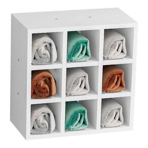 Organize e decore seu salão de beleza ou sua casa com esse lindo nicho organizador de toalhas feito em madeira MDP branco alto brilho, que além de lindo, deixa suas toalhas organizadas de forma simples e de fácil uso.