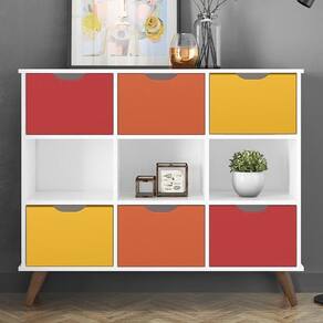 Nicho Organizador Retrô 1478 Com 6 Gavetas Branco/colorido - Qmovi Branco/colorido Nicho Organizador Retrô 1478 com 6 Gavetas - Qmovi O Nicho Organizador foi pensado para facilitar o processo de organização. É um produto muito prático que pode ser utilizado em diversos ambientes como quarto infantil, escritório e sala de estar. Ele possui 9 compartimentos internos que contribuem para organização do e pés retrô que agregam charme e elegância ao ambiente. Acompanha 2 Kits com 3 Gavetas, um módulo opcional que foi feito para incrementar o Nicho Organizador, melhorando sua divisão interna e dando mais beleza e praticidade ao seu ambiente. As gavetas contam com fitas de feltro na parte inferior para não danificar o móvel. Nicho Organizador 1478 com Pés Retrô - Qmovi - Estrutura em MDP - Pintura UV atóxica - 9 Compartimentos - Pés retrô - Móvel multifuncional