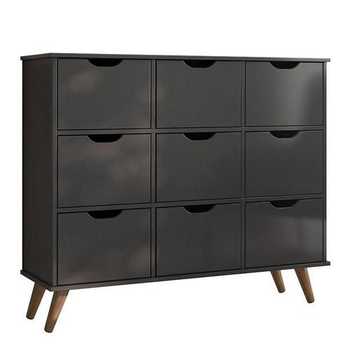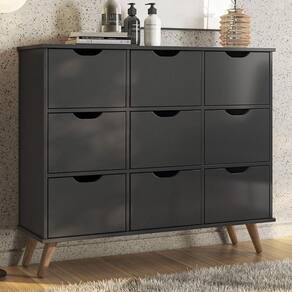 Nicho Organizador Retrô 1478 Com 9 Gavetas Preto - Qmovi Preto Nicho Organizador Retrô 1478 com 9 Gavetas - Qmovi O Nicho Organizador foi pensado para facilitar o processo de organização. É um produto muito prático que pode ser utilizado em diversos ambientes como quarto infantil, escritório e sala de estar. Ele possui 9 compartimentos internos que contribuem para organização do e pés retrô que agregam charme e elegância ao ambiente. Acompanha 3 Kits com 3 Gavetas, um módulo opcional que foi feito para incrementar o Nicho Organizador, melhorando sua divisão interna e dando mais beleza e praticidade ao seu ambiente. As gavetas contam com fitas de feltro na parte inferior para não danificar o móvel. Nicho Organizador 1478 com Pés Retrô - Qmovi - Estrutura em MDP - Pintura UV atóxica - 9 Compartimentos - Pés retrô - Móvel multifuncional