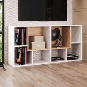 O(a) Nicho Organizador Sonho 8 Prateleiras Branco/Aveiro - Movelbras é produzido em MDP na escala de brilho Fosco, e possui um grau de dificuldade de montagem: Médio.