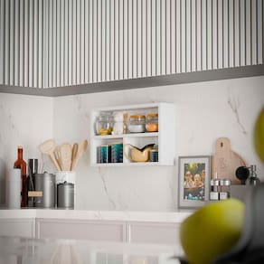 Ideal para armazenar temperos, potes, xícaras e pequenos utensílios, esse nicho traz praticidade e um toque moderno ao ambiente.