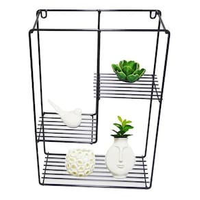 As criativas prateleiras retangulares servem como organizadores e ao mesmo tempo decoram o ambiente com um design moderno. Os modelos de metal aramados anti ferrugem são leves e resistentes, aperfeiçoando o espaço útil e possibilitando o uso em diversas situações. O produto vai pronto para ser pendurado na parede.