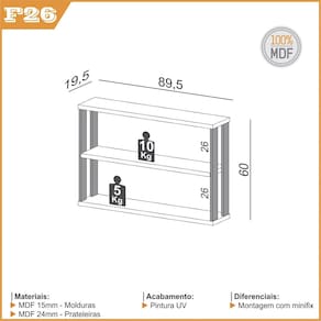 Características: Estrutura 100% MDF Acabamento em Pintura UV Prateleiras Leves e Resistentes Estilo Industrial Necessita de Fixação na Parede