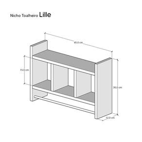 Organize os rolos de papel higiênico, use a barra de metal para pendurar sua toalha de rosto ou de banho e aproveite a prateleira para colocar uma decoração a mais em seu ambiente. Este nicho toalheiro garantirá praticidade no seu dia a dia e elogios para seu banheiro!
