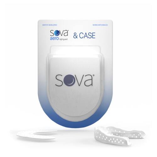 Protetor noturno SOVA Aero com estojo - 1,6 mm de espessura - Ajuste moldado sob medida - Protege contra ranger e apertar os dentes à noite - Sem odor e sabor - Removível até 20 vezes - Não tóxico -
