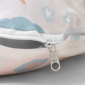 A nossa coleção de enxoval conta com almofadas, par de rolos, ninhos, lençóis, edredons, cabanas e até rede de bebê dupla face.