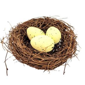 Ninho Decorativo Com 3 Ovos 12cm Decoração De Páscoa Amarelo Charme Rústico: Ninho Decorativo com Ovos de Páscoa