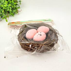 Ninho Decorativo Com 3 Ovos 12cm Decoração De Páscoa Rosa Charme Rústico: Ninho Decorativo com Ovos de Páscoa
