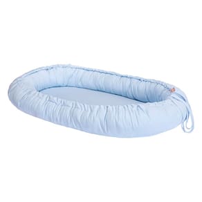 Ninho para Bebê Azul, esse elegante ninho redutor de berço oferece ao bebê um espaço aconchegante e seguro para descansar. Com um design arredondado, confeccionado em tecido 100% algodão de alta qualidade, proporciona um conforto extra, mantendo a suavidade essencial para o bem-estar do bebê. Além disso, possui na parte inferior zíper para retirar a espuma do dundo, facilitando a higienização do ninho.