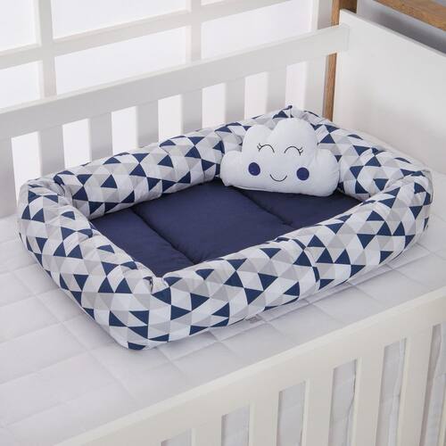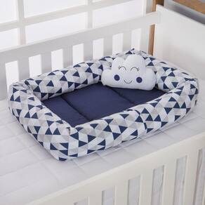 Coleção Ninho Estampado criada para enfeitar ainda mais o quarto do seu bebê. Ele é projetado para fornecer um ambiente seguro e confortável para o recém-nascido dormir. Feito de tecido macio e acolchoado, com bordas elevadas para ajudar a delimitar o espaço do bebê dentro do berço. O ninho serve para criar uma sensação de segurança e aconchego, imitando a sensação do útero materno. Além disso, ajuda a evitar que o bebê role para os lados ou para fora do berço, proporcionando uma superfície mais firme ao redor dele. Contém Tamanho 01 Ninho 0,65 cm x 0,45 cm 01 Almofada tamanho irregular Composição Tecido: 100% algodão Enchimento: 100% Poliéster Marca: Não Informado