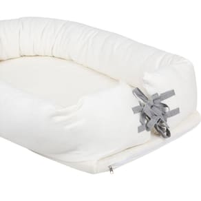 Devido as almofadas que formam uma barreira em volta do corpinho, seu bebê fica seguro, tem um sono super tranquilo e não corre riscos de bater nas laterais do berço e rolar da cama. Sempre nesse formato, super macio e confortável, os ninhos são produzidos em tecido suedine 100% algodão. Assim, evita o surgimento de possíveis alergias na pele do bebê, bordado exclusivo HUG, centro sem enchimento para não deformar a moleira do bebê, suedine com nanotecnologia que agrega maciez e tratamento antibacteriano e antifúngico. Forro lateral em TNT, enchimento do rolo lateral em fibra.