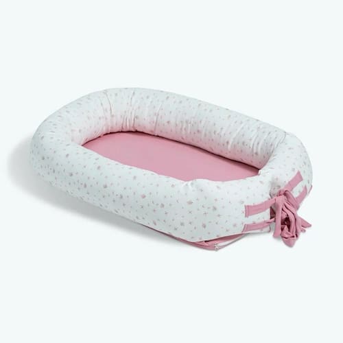 Devido as almofadas que formam uma barreira em volta do corpinho, seu bebê fica seguro, tem um sono super tranquilo e não corre riscos de bater nas laterais do berço e rolar da cama. Sempre nesse formato, super macio e confortável, os ninhos são produzidos em tecido suedine 100% algodão. Assim, evita o surgimento de possíveis alergias na pele do bebê, bordado exclusivo HUG, centro sem enchimento para não deformar a moleira do bebê, suedine com nanotecnologia que agrega maciez e tratamento antibacteriano e antifúngico. Forro lateral em TNT, enchimento do rolo lateral em fibra.