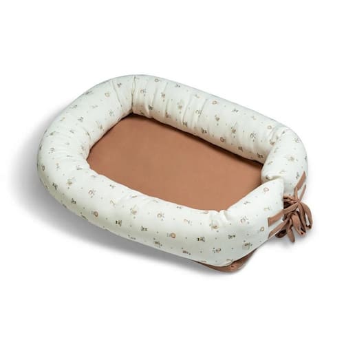 Devido as almofadas que formam uma barreira em volta do corpinho, seu bebê fica seguro, tem um sono super tranquilo e não corre riscos de bater nas laterais do berço e rolar da cama. Sempre nesse formato, super macio e confortável, os ninhos são produzidos em tecido suedine 100% algodão. Assim, evita o surgimento de possíveis alergias na pele do bebê, bordado exclusivo HUG, centro sem enchimento para não deformar a moleira do bebê, suedine com nanotecnologia que agrega maciez e tratamento antibacteriano e antifúngico. Forro lateral em TNT, enchimento do rolo lateral em fibra.