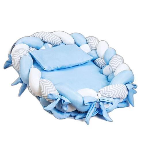 Ninho De Berço Trançado 4 Peças Menino Azul Claro Ninho De Berço Trançado 4 Peças Menino Azul Claro Ninho de berço trançado 4 peças menino azul claro Ninho de berço trança 4 peças Medidas e peças: 01 colchonete - 45 cm x 70 cm 01 travesseiro 30 cm x 20 cm 01 fronha 30 cm x 20 cm 01 trança 1,80 m x 15 cm Composição: Peça confeccionada no tecido misto Observações: O ninho já vai com os enchimentos. Indicado para ser alocado em berços em ambos os padrões; A trança pode ser retirada e Utilizado como protetor lateral