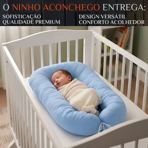 Ninho Super Macio Aconchego Proteção Recém-Nascido Cor: AZUL O primeiro abraço de carinho e segurança para o seu bebê, com conforto e proteção desde os primeiros dias. O Ninho Super Macio foi projetado para oferecer segurança, conforto e praticidade aos recém-nascidos. Seu design anatômico reduz o espaço do berço, simulando o útero materno, promovendo um sono mais tranquilo. Ideal para uso no berço, sofá, cama dos pais ou viagens, garantindo cuidado e praticidade no dia a dia. Imagine seu bebê dormindo protegido e aconchegado, envolvido em um ninho macio que transmite carinho e segurança. Cada detalhe foi pensado para gerar bem-estar e tranquilidade, proporcionando momentos de descanso mais calmos para o bebê e mais confiança para os pais. Extremamente prático, possui ajuste que acompanha o crescimento do bebê e pode ser levado para qualquer lugar. Fácil de higienizar, garante durabilidade e manutenção da maciez. Contém: Contém: 01 Ninho Fechado: 65cm x 45cm x 10cm Aberto: 76cm x 45cm x 10cm Interior do Ninho: 45cm x 20cm Composição: Tecido:200 FIOS 1. Até qual idade o bebê pode usar o ninho Indicado para recém-nascidos até aproximadamente 6 meses, conforme crescimento do bebê. 2. Pode ser durante toda a noite Sim, desde que corretamente e sob supervisão de um adulto. 3. É fácil de transportar para maternidade ou passeios Sim, é leve, portátil e ideal para viagens e deslocamentos. 4. O tecido mantém a maciez após várias lavagens Sim, basta lavar em ciclo delicado para preservar o toque macio e o acabamento. 5. Qual o diferencial do Ninho Super Macio Combina aconchego, proteção e praticidade, oferecendo noites mais tranquilas para o bebê e segurança para os pais. Proporcione ao seu bebê o aconchego e proteção que ele merece desde os primeiros dias. Garanta agora o Ninho Super Macio Aconchego Proteção Recém-Nascido e transforme o sono do seu bebê em momentos seguros e confortáveis. Marca: Não Informado